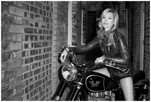 Kate Moss pose pour la marque Matchless London, sur la mythique moto de Marlon Brando, dans une série de clichés en noir et blanc.
